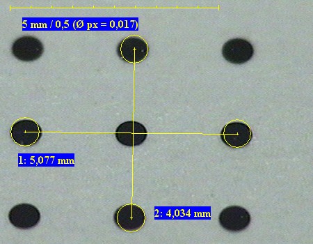 Measured values are correct within the limits of pixel accuracy of 1 pixel.