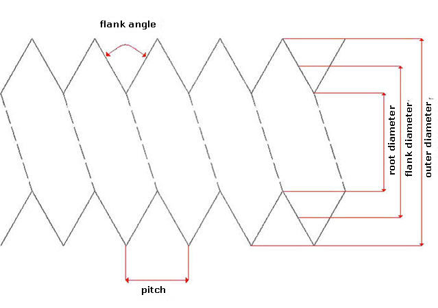 the axis of the thread. This flank diameter is, at a thread without clearance,