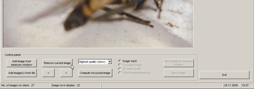 The sharpened image is now displayed and the button "Show focussed image" becomes active.