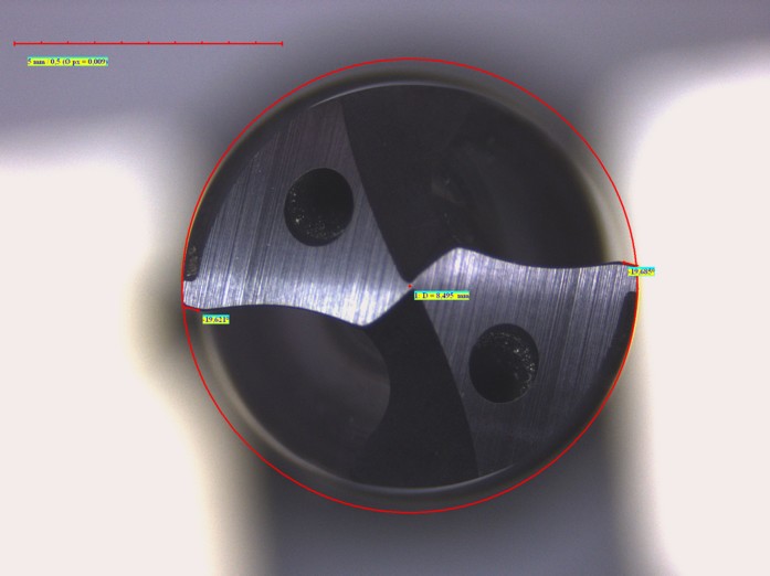 Set a point to each cutting edge. Using the right mouse button then produces a circle.