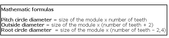 The dimensions "Module size","Outside diameter", "Pitch circle