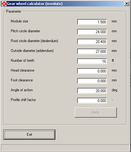 The following image shows the parameter window of the gear