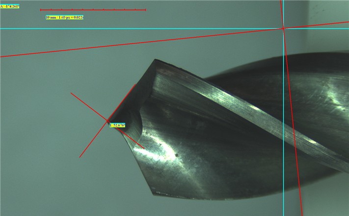 The hair cross is drawn on the plane of the drill and the angle adjusted. So the