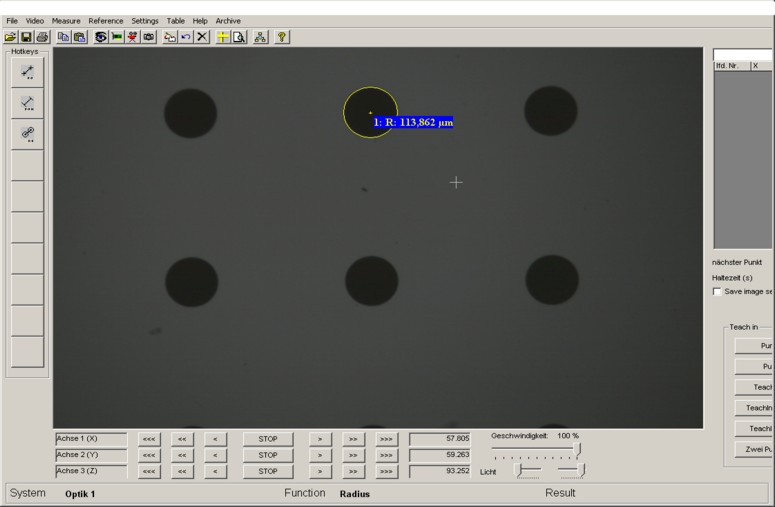 Use the joystick or the arrow buttons to move the motors a short distance in the X and Y directions. The measuring value (yellow circle) must move with the black point into the same direction. If this is not